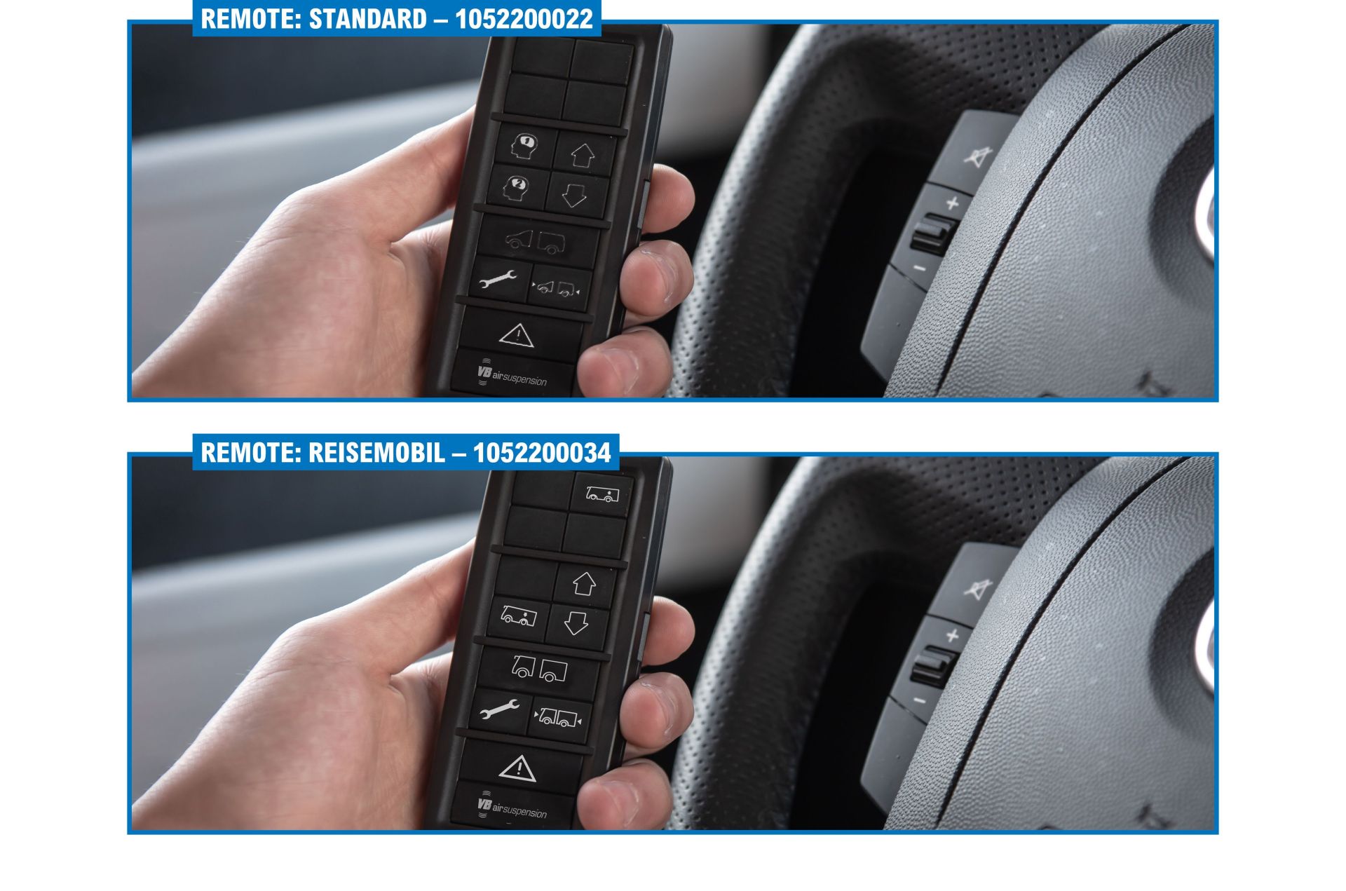 Die VB-FullAir 2C ist ein Vollluftfederungssystem für die Hinterachse des Fahrzeugs. 2C oder 2-Corner weisen darauf hin, dass zwei Höhensensoren montiert sind. Das VB-FullAir 2C-System wird mit einem der unten abgebildeten Bediengeräten geliefert. Mit unserem hochwertigen Bediengerät (VB-Remote Control) können Sie verschiedene Funktionen des Systems einfach bedienen.