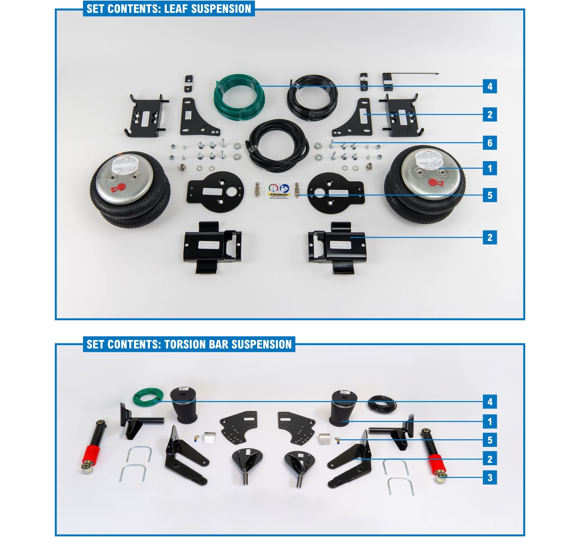 • On a vehicle with torsion bar suspension, the air spring is mounted on the side of the chassis. The air spring supports the existing torsion bar suspension.