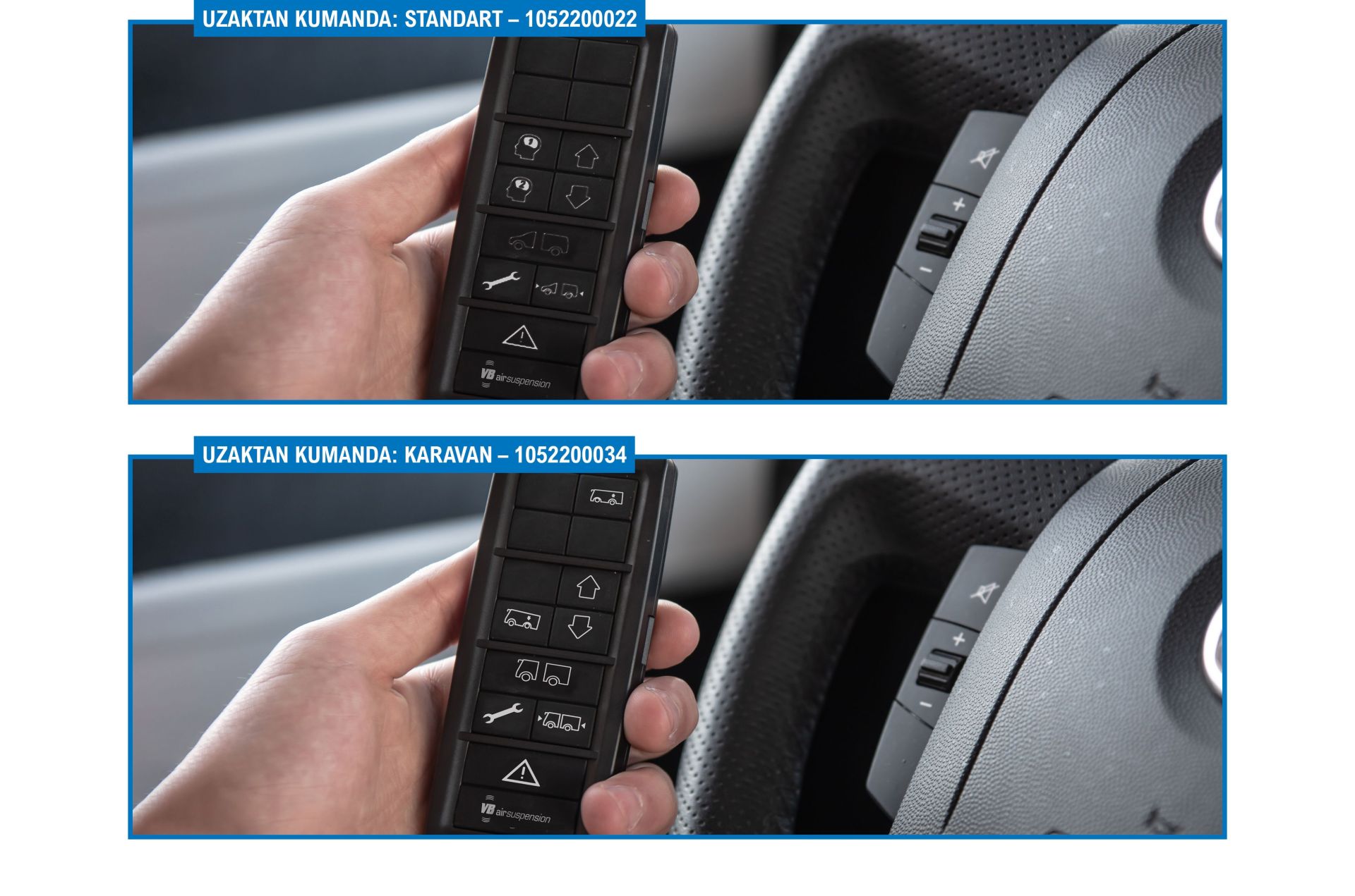 VB-FullAir 2C, aracın arka aksında bulunan eksiksiz bir havalı süspansiyon sistemidir. 2C veya 2-Köşe, iki yükseklik sensörünün takılı olduğunu gösterir. VB-FullAir 2C sistemi, aşağıda gösterilen uzaktan kumandalardan biriyle birlikte tedarik edilir. Sistemin çeşitli fonksiyonlarını kolayca kontrol etmek için lüks uzaktan kumandamızı (VB-Remote control) kullanabilirsiniz.